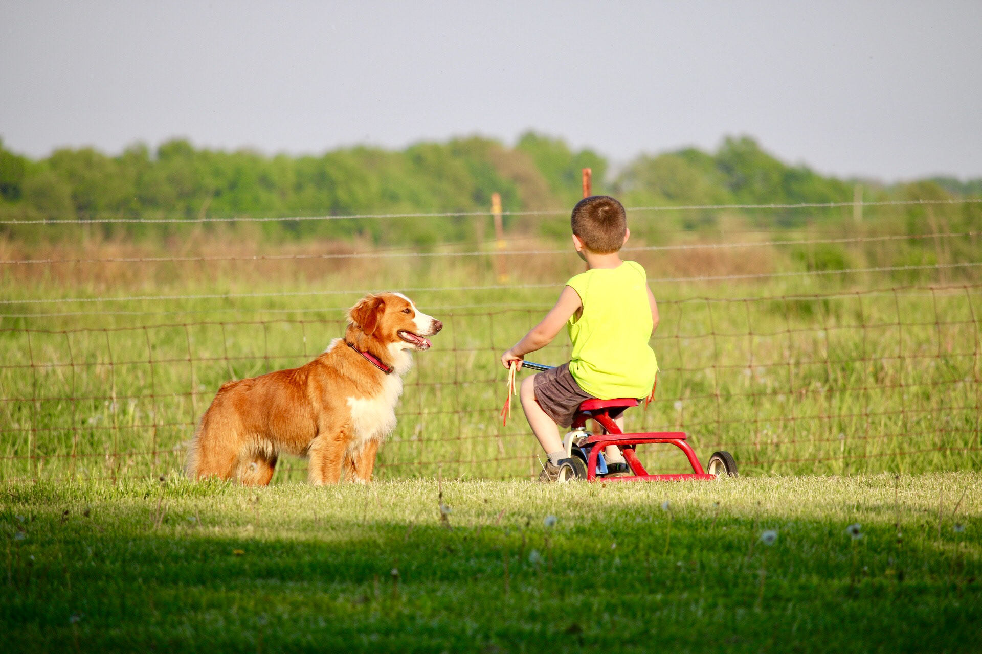 Daisy is a clear sable & white English Shepherd, and a most beloved pet to our family. She has such an amazing presence and always seems to know the right move to make. She is confident and very calm natured. Beyond patient with our three young children, she is especially fond of Grant, our 4 year old son. She sensed from the beginning that she was to be "his girl," and they've stuck together ever since.